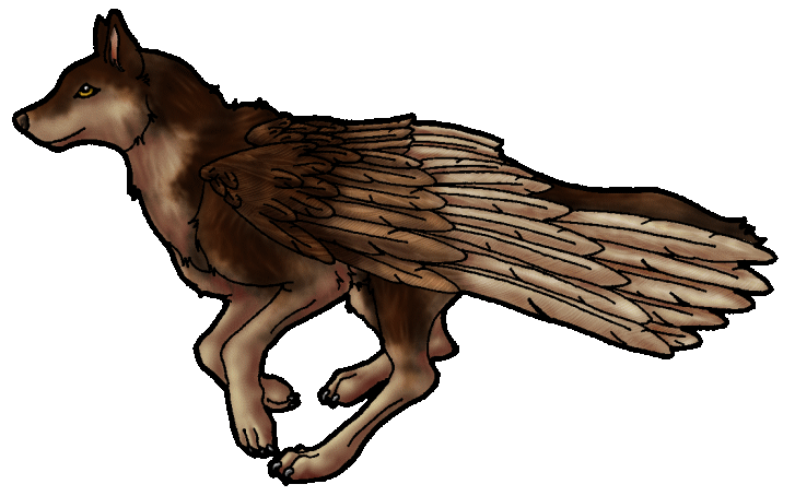 Name: Misa ShadowPaw Warder: Toretera Selamputo Gender: female Species: 1/2 Canese, 1/4 Alskyrian, 1/4 Reririan Winged Wolf Mutt Father: white Rapian Turlsor Mother: gold-black Kaonajimi JumpFire Height: 3'1" high Color: brown Eye Color: gold Magic: shapeshifting |
